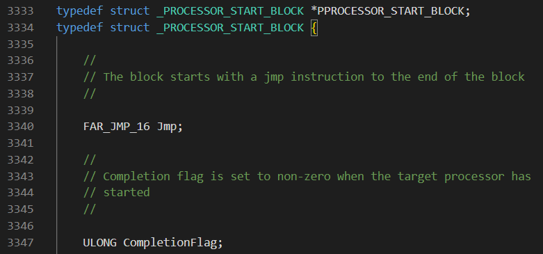 During the scan a few guard checks are implemented, verifying signatures and offsets. Before implementing the checks I’ve replicated the structures described in this documentation of _PROCESSOR_START_BLOCK and wrote the following code that prints the offset of the given field within the structure: